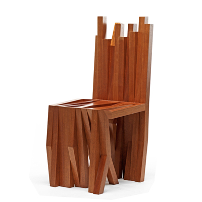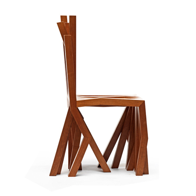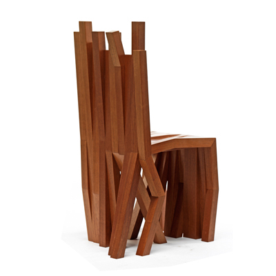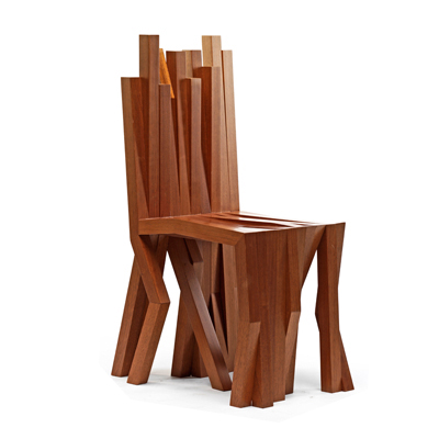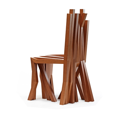 I was sitting in the shower looking at the water flowing out from the shower head. Then I thought of wood. My centipede chair was born.